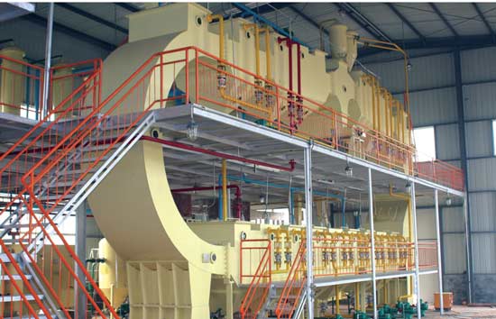 Sunflower oil extraction machine of sunflower oil production process: pre-pressed cake → oil extraction → mixed oil evaporation, oil stripping → extracted crude oil