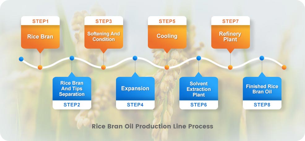 rice bran - rice bran and tips separation - softening and condition - expansion - cooling - solvent extraction plant - refinery plant - finished rice bran oil